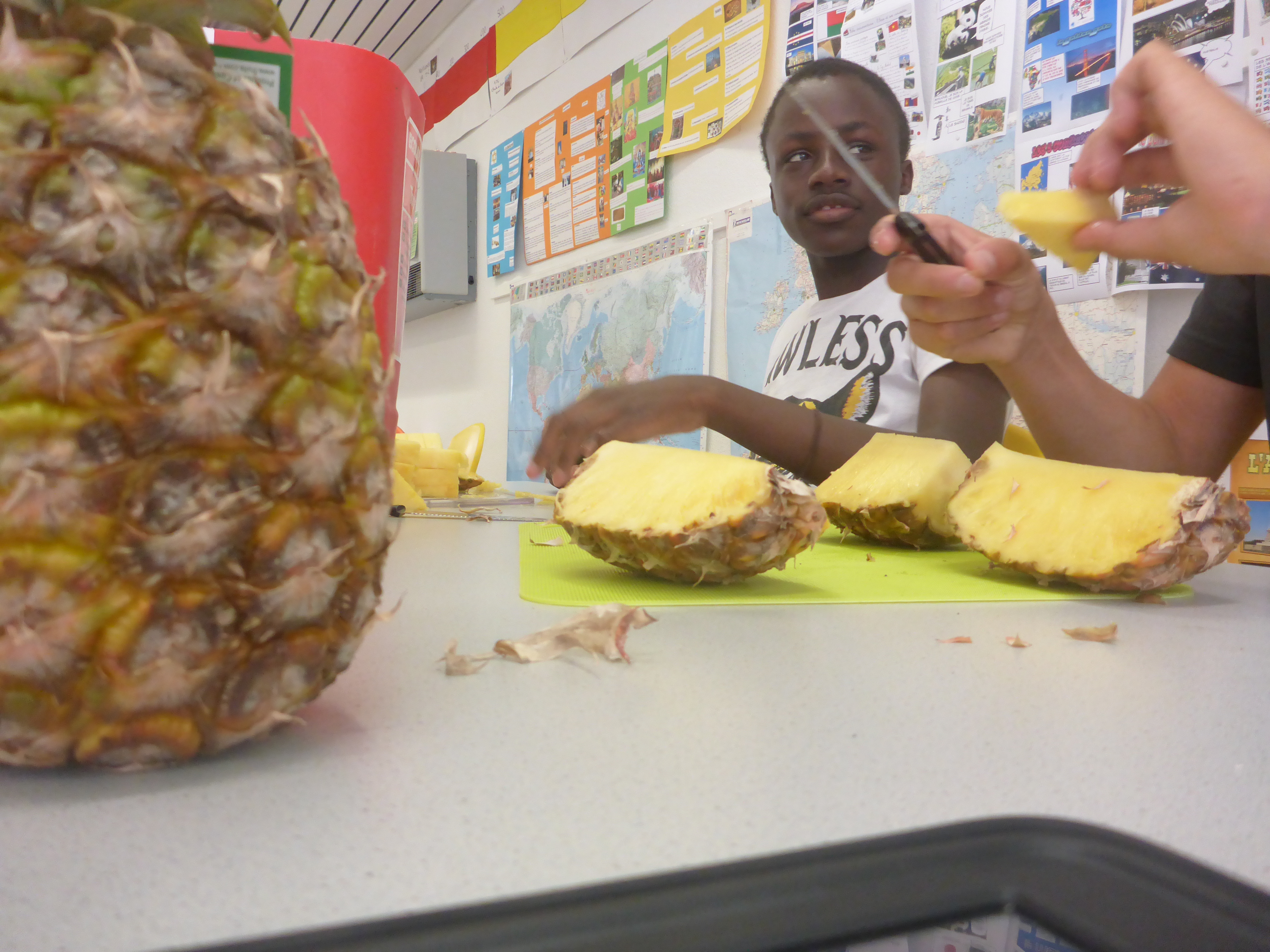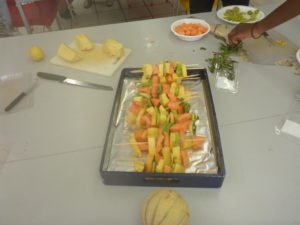 2) Le deuxième groupe a fait des brochettes de fruits.