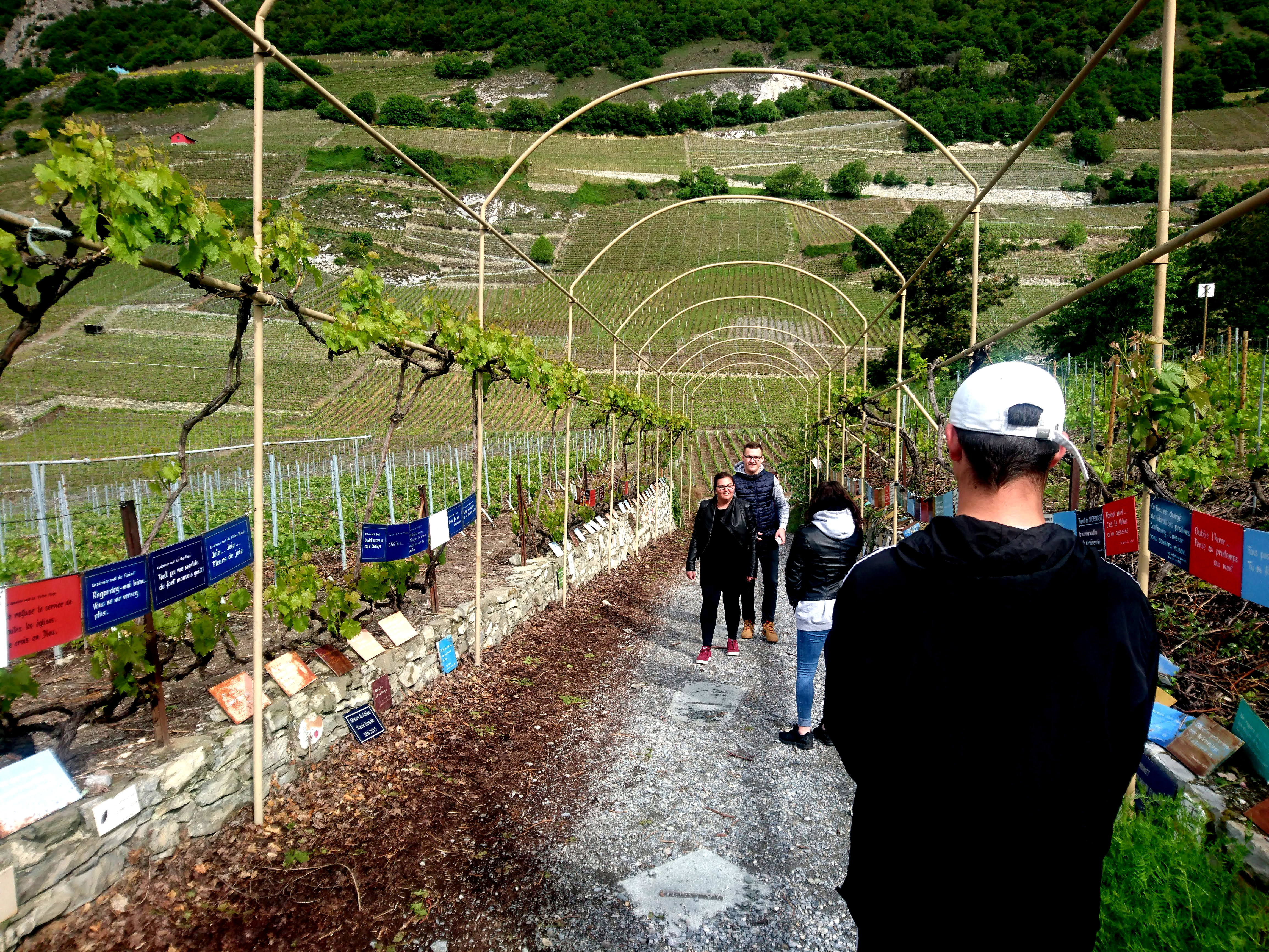J’ai bien aimé aller visiter la vigne à Farinet. J’ai bien aimé marcher pour aller jusqu’à la passerelle mais j’avais peur, alors je courrais.