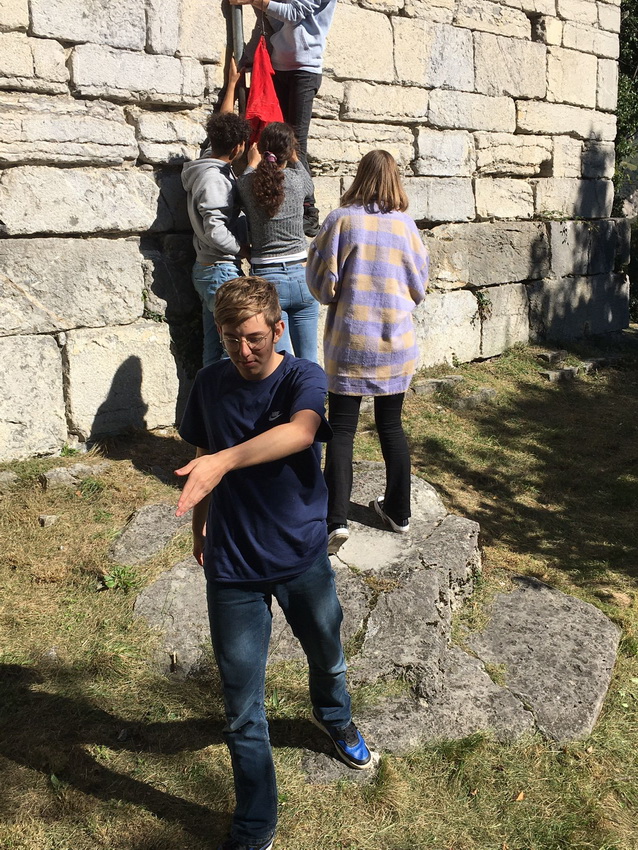 Après on est allée là où on a mangé c’était super joli ! Il y avait une tour et avec Etienne, Romain, Benjamin et moi on a regardé si on pouvait rentrer dedans, on ne pouvait pas alors on a joué à cache-cache, c’était cool et drôle. Il y avait une chapelle détruite mais c’était joli. Merci aux profs pour cette sortie!“