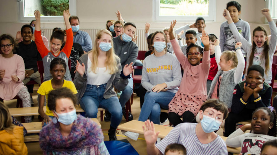 Le célèbre chanteur pour enfants a mis de bonne humeur toute l’école avec son titre « Chope la banane » et d’autres chansons bien connues des élèves de Rovéréaz.