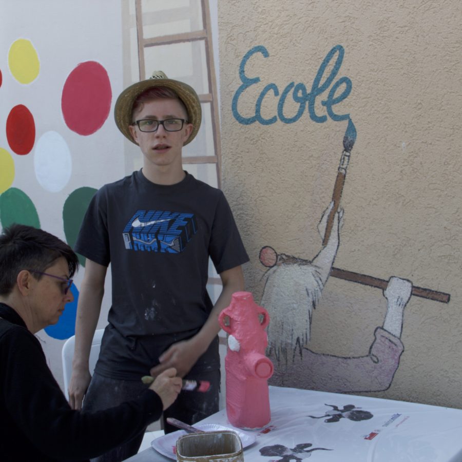 Le vendredi 1er juin et le samedi 2 juin, nous avons fait Art Libre. Nous avons décoré certains murs de l’école et il y a des jeunes de l’école d’art de Fribourg (EIKON) qui nous ont aidés à faire plusieurs activités comme les masques africains et plein d’autres choses. Nous avons travaillé par groupes que Stéphane Fontana avait faits.