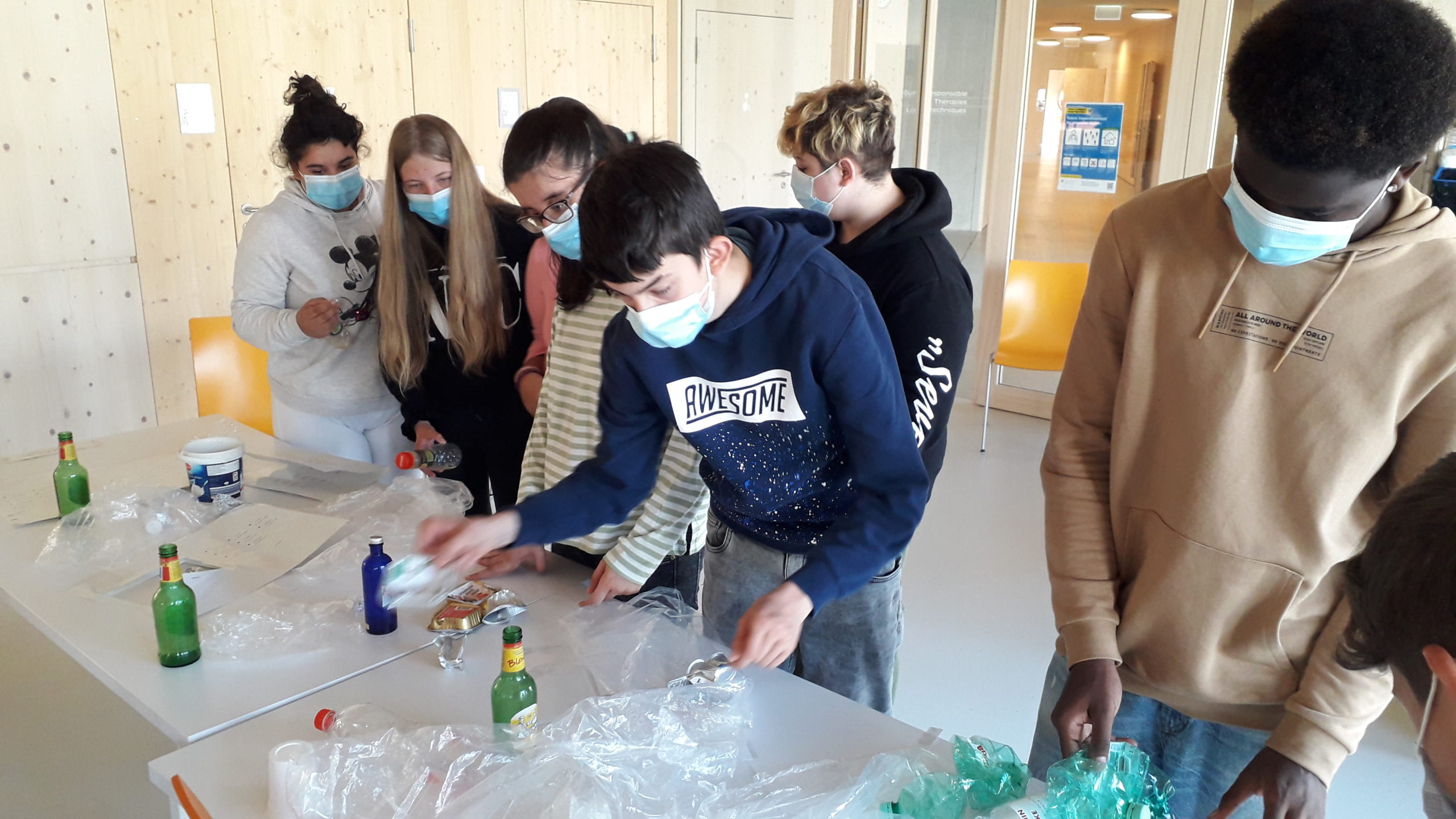 Le 22 avril c’était la journée internationale de la terre. Pour cette journée la classe 107 (Aaron, Bavin, Léa, Riannan, Ryan, Sinthica, Sokol, accompagnés de Maude, d’Amandine et de Maylis) a organisé une activité pour apprendre à trier les déchets. Sinthica et Sokol on réalisés les affiches pour les différents poubelles (verre, alu, plastique, pet). Toutes les classes ont participé à cette journée. Avec les classes 101 à 103, les élèves de la classe 107 ils ont accompagnés les petits jusqu’à la mise en poubelle des déchets. Avec les classes 104 à 106 les élèves de ces classes avaient comme première tâche de trier les déchets puis de les mettre dans la bonne poubelle. Les élèves de la 107 étaient là pour nous aider si besoin.