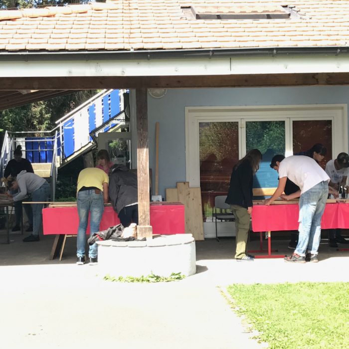 Tous les élèves de l’école ont participé durant une semaine à construire des parois ludiques avec des objets recyclés.