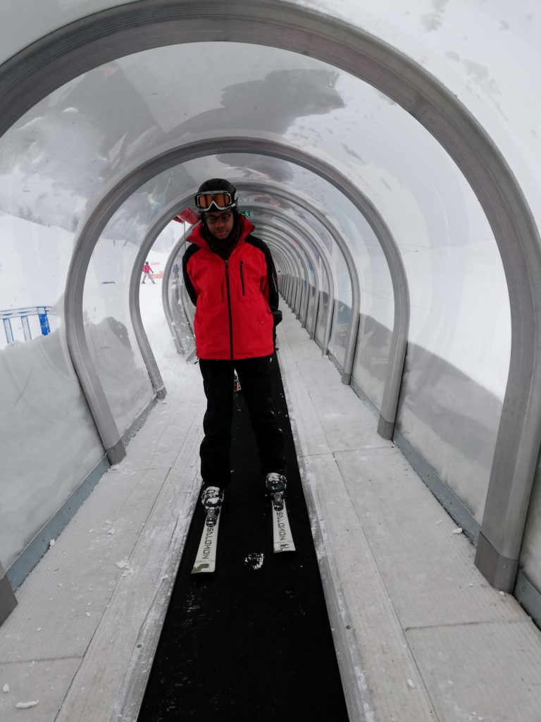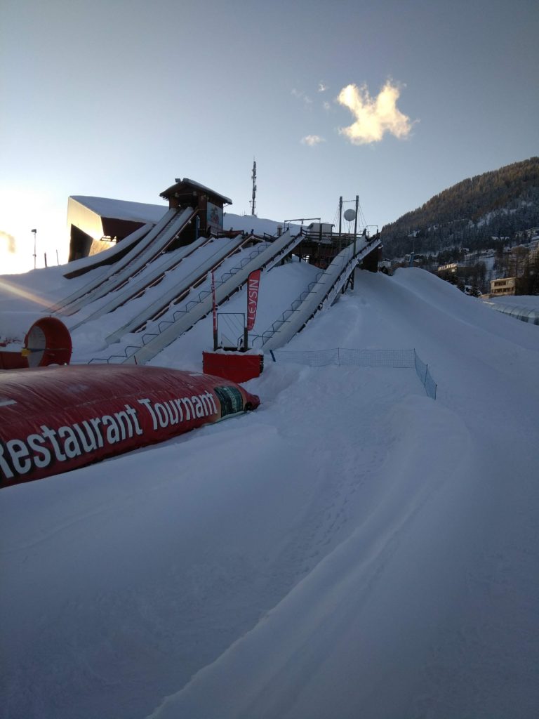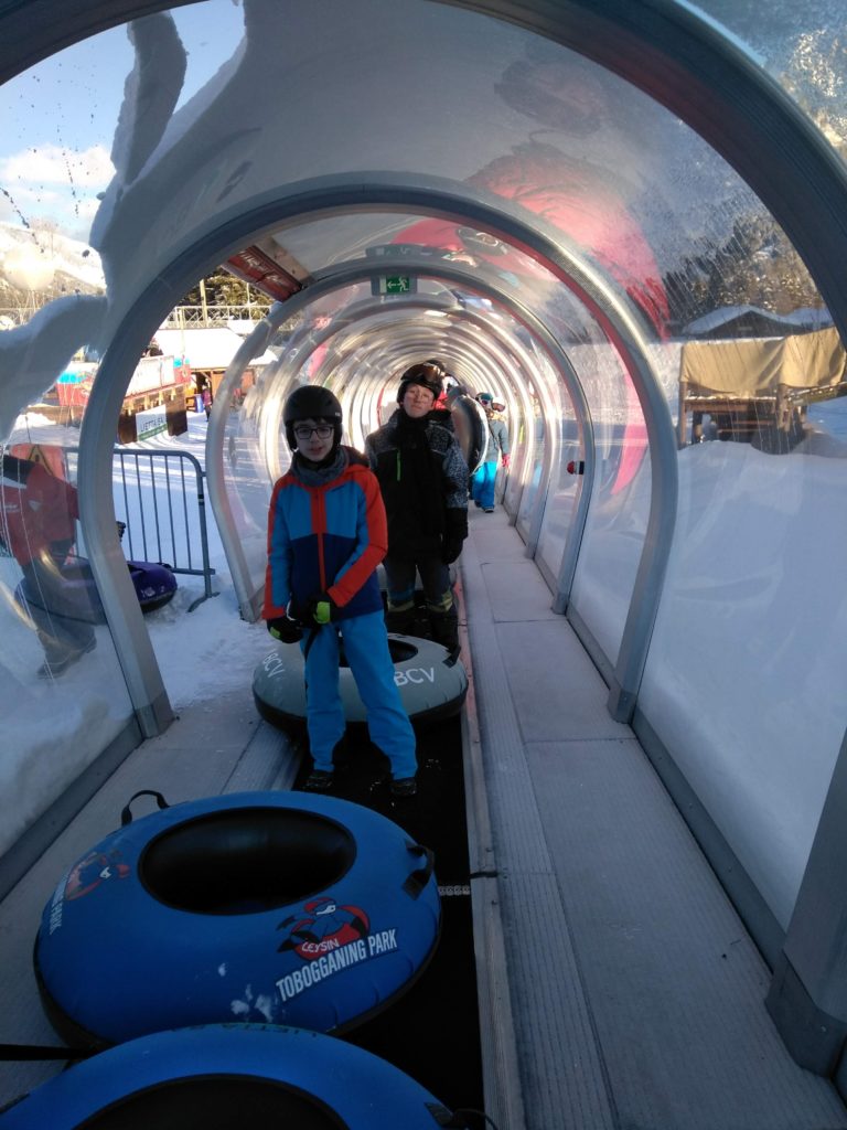 Nous prenons chacun une grosse bouée et montons grâce au tapis roulant sur les grandes pistes de luge, il y en a 10, de niveau différent. Nous commençons par les plus faciles, mais cela fait quand même un peu peur Au bout de trois descentes, Exaucé et Anne-Sophie arrêtent et vont se réchauffer auprès d’un chocolat chaud en attendant les autres ;-))